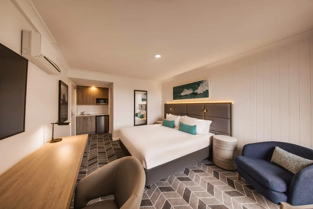 Hotellissa on tarjolla 86 yhden ja kahden makuuhuoneen huoneistoa sekä erillisiä studiohuoneita. Huoneet ovat mukavia ja niissä on oleskelutila, keittiö sekä pyykinpesumahdollisuus. Aivan Coogeen uimarannan tuntumassa sijaitseva hotelli on myös lähellä hyviä ravintoloita ja viihdepalveluita.