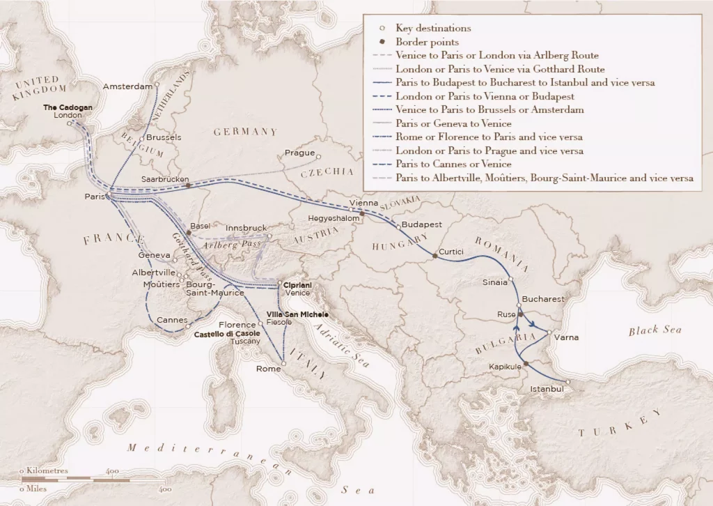 Venice Simplon-Orient-Express on yksi maailman kuuluisimmista ja suosituimmista junamatkakokemuksista. Reitit halkovat Eurooppaa upeilla art deco-henkisillä junilla, matkoilla yhdistyvät upea seikkailu ja tyylikäs matkanteko. Vieraat nauttivat junassa paitsi tilavista vintage -tyylisistä hyteistä myös herkullisesta ruoasta ja junan ainutlaatuisesta tunnelmasta. Klassinen, upea junamatka on vertaansa vailla oleva tapa kokea Euroopan maisemat. Junan klassikkomatka on Lontoosta Venetsiaan, jolla nähdään Ranskan ja Sveitsin henkeäsalpaavat vuoristoiset maisemat. Pariisista Istanbuliin vievä reitti on junan nimikkomatkoja Euroopan läpi. Vuodenaikojen mukaan reitteihin kuuluu Euroopan kauneimpia kaupunkeja kuten Budapest, Praha, Vienna ja Berliini.
