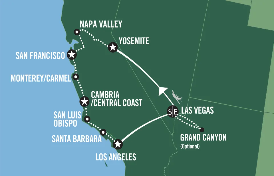Kaliforniassa suosikkikohteita ovat San Francisco ja Los Angeles. Nämä kaupungit ovat luonteeltaan hyvin erilaiset ja voimme suositella automatkaa niiden välillä.