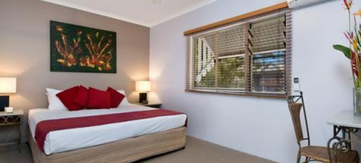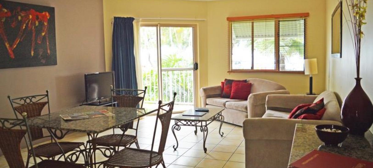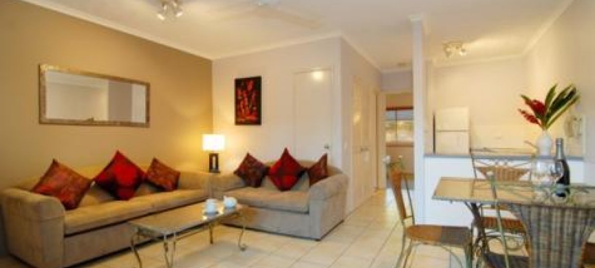 Huoneistot, joista on näkymät puutarhaan, uima-altaalle tai Korallimerelle ovat kaikki täysin omavaraisia hyvin varusteltuja asuntoja. Huoneistoissa on King Size -vuoteet tai erilliset sängyt ja vuodesohva sekä pesukone ja kuivaaja. Palveluihin kuuluvat ilmainen Wi-Fi, kirjasto, DVD vuokraus sekä grillausalue. Cairns Beach Resortissa on rantaravintola, pieni ostoskeskus ja sieltä on säännöllinen bussiyhteys Cairnsiin. Retkijärjestäjät noutavat tarvittaessa suoraan hotellista ja autonvuokraus onnistuu hyvin. Autolle on parkkimahdollisuus.