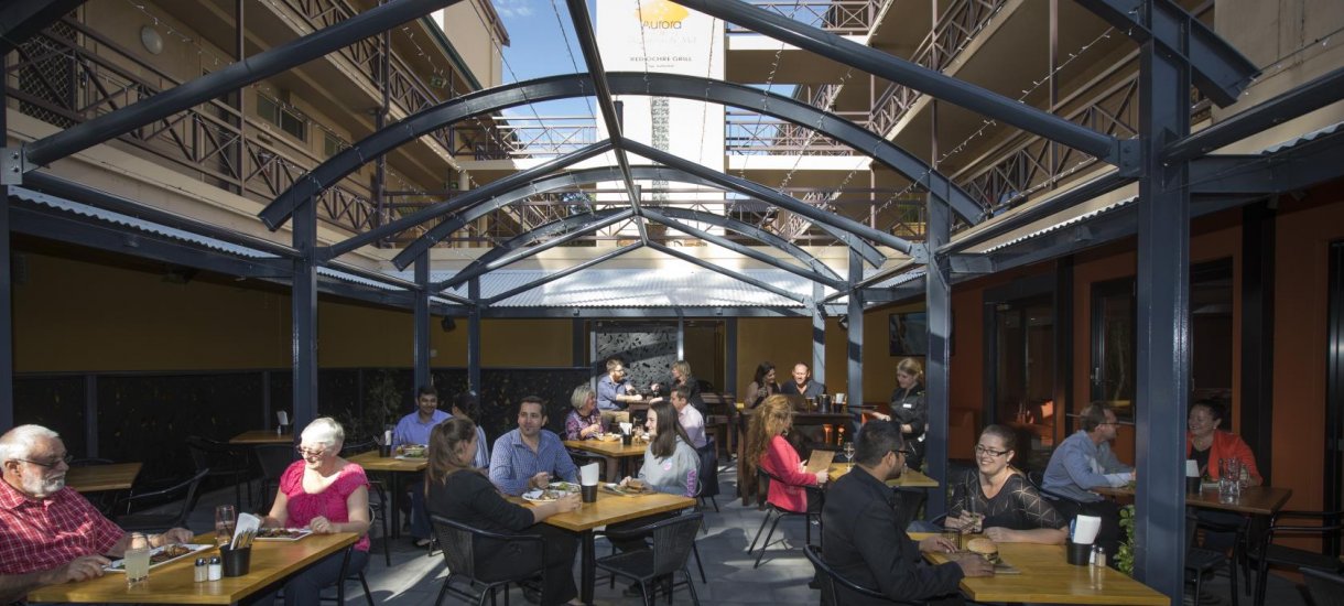 Uuden vastaanoton sekä piha- ja uima-allasalueen saanut Aurora on keskeisin hotelli Alice Springsissä. Se on yhteydessä Todd Malliin – kaupungin tärkeimpään ostos- ja ravintolakeskukseen ja siten suosittu vaihtoehto trooppisen Queenslandin ystäville.